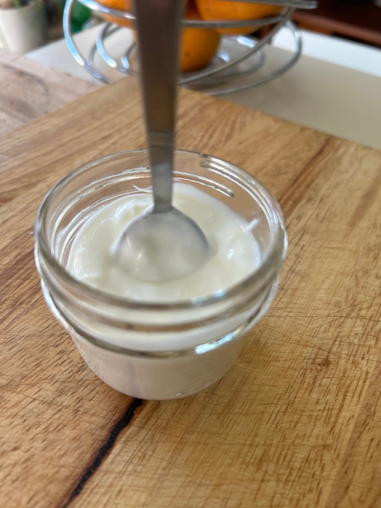 - 2 cuillères de yogourt de ta batch précédente. Si c’est ta première, tu peux prendre du yogourt nature avec des bactéries actives de l’épicerie.
